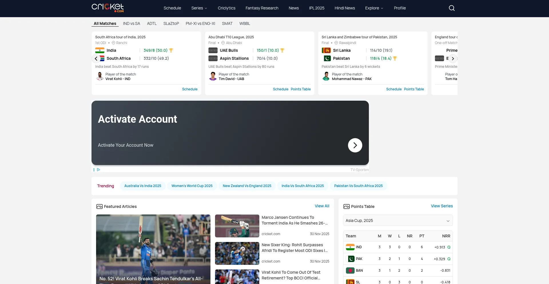Live Cricket Score, Match Schedule, Predictions & Latest News | Cricket.com