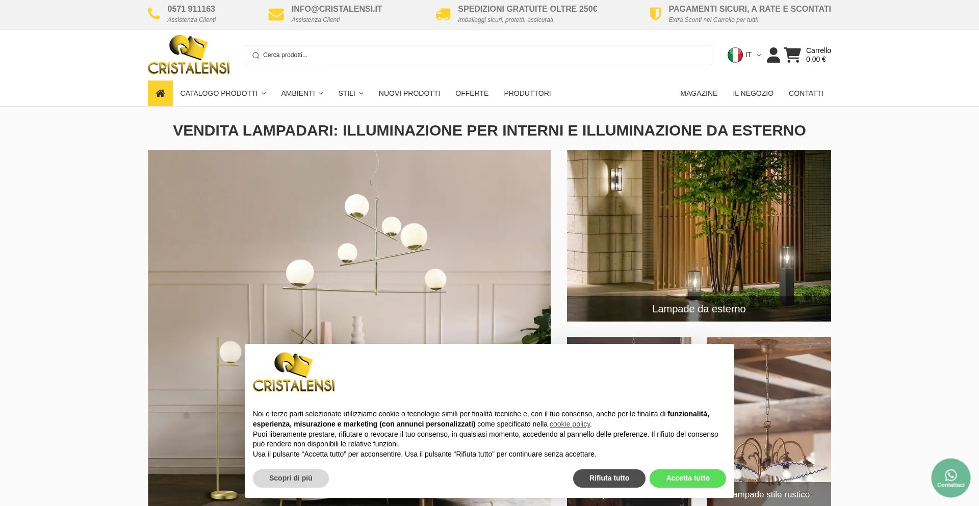 Vendita Lampadari, Illuminazione da interni | Cristalensi Lampadari