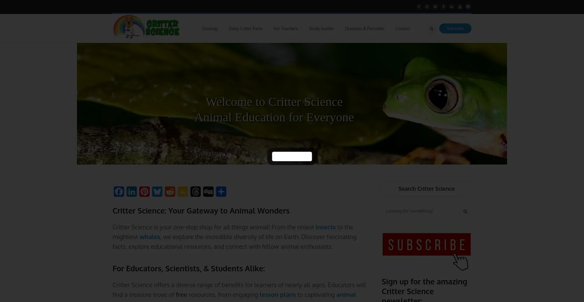 网站上存在社交媒体链接表明 critter.science 在社交媒体上维护官方账户,这是可信度和参与度的积极信号。