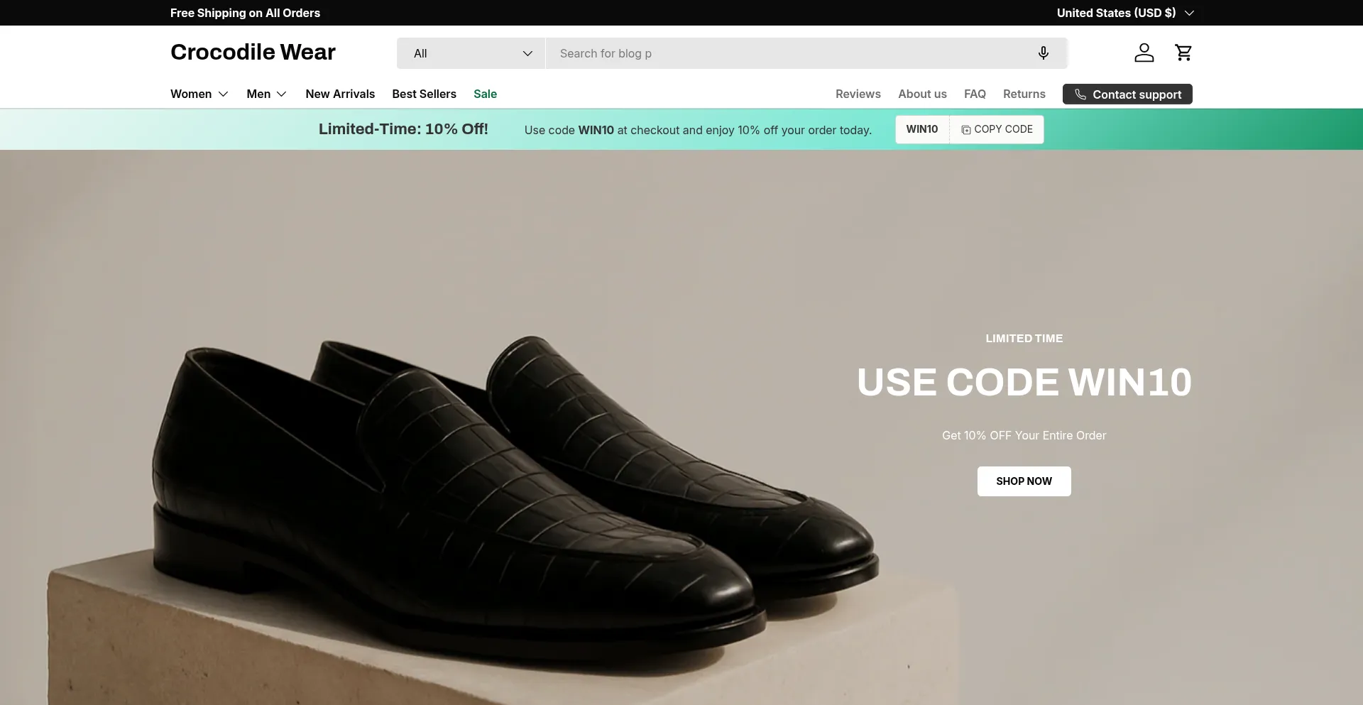 我们的分析器确定网站 crocodilewear.com 使用的是 Shopify CMS。Shopify 是一个流行的电子商务平台,全球约有 4.4% 的网站使用 Shopify。Shopify 通常确保购物体验的安全性,但访问者应小心某些第三方集成,因其若未经适当验证,可能会带来安全风险。