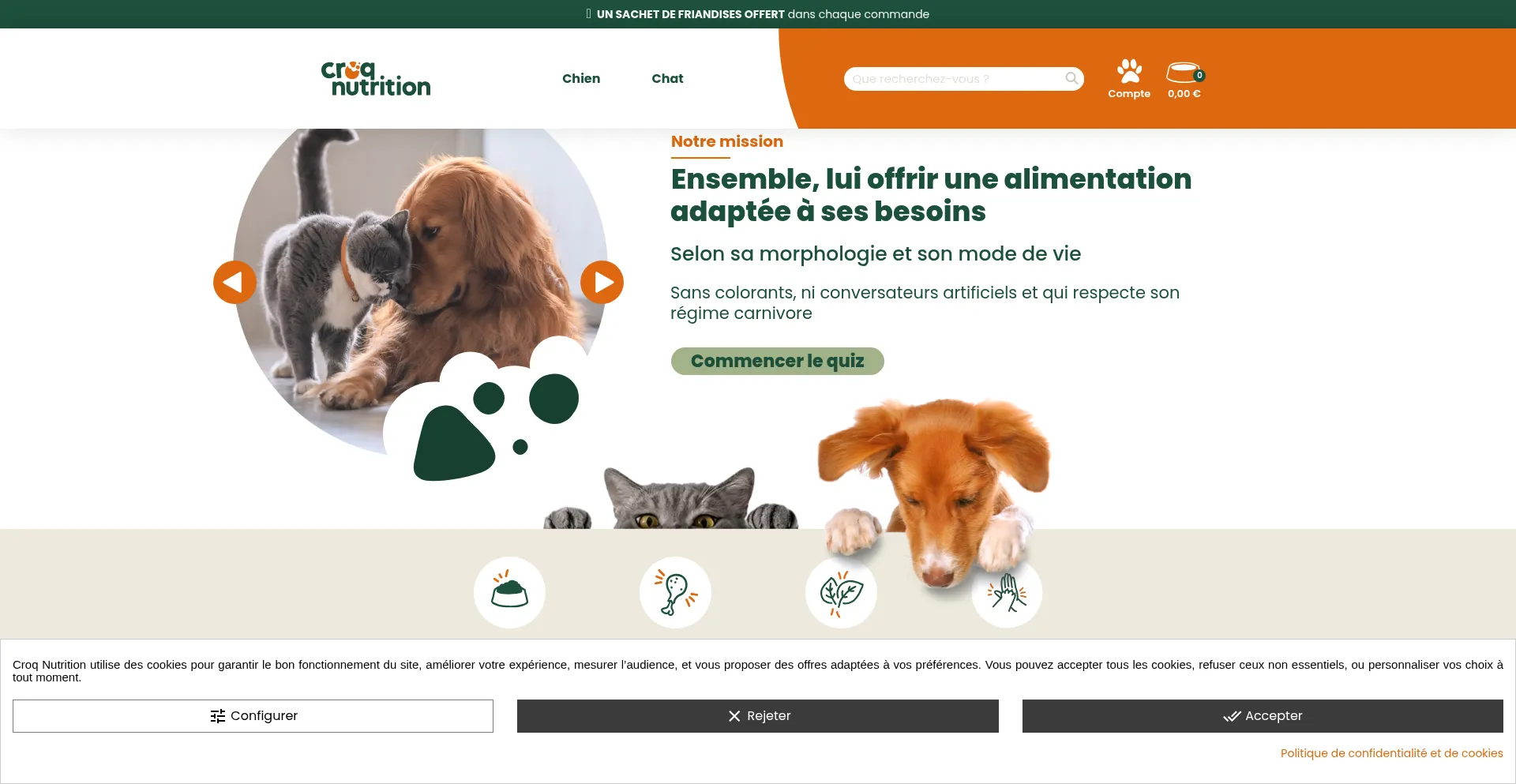 Animalerie en ligne, spécialiste en croquettes naturelles pour chien et chat super premium, holistiques sans-céréales, friandises naturelles, produits d’hygiène
