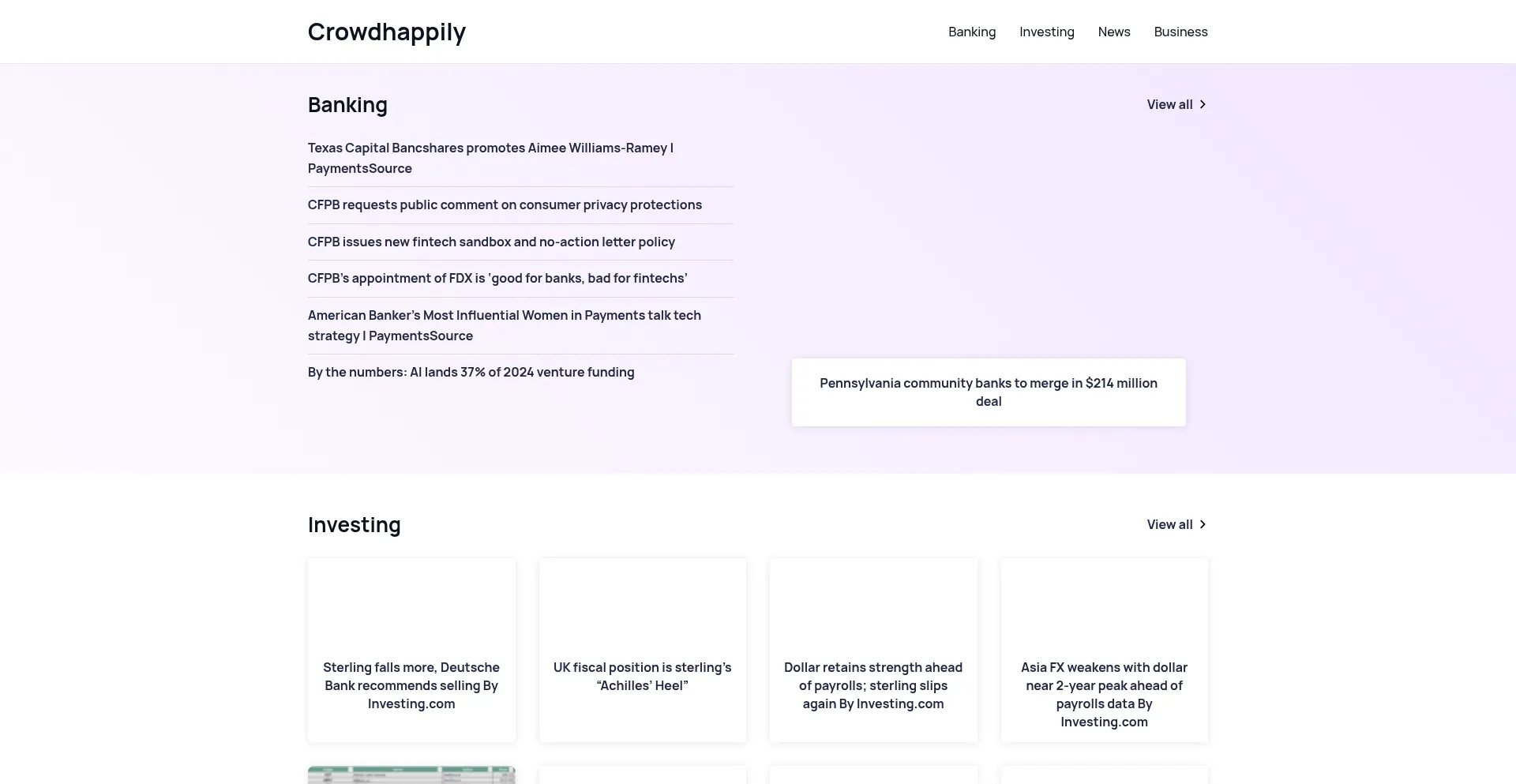 crowdhappily.com 使用 Bootstrap,这是一个广泛采用的开源响应式网页开发框架。Bootstrap 通过标准化组件和样式实现移动友好界面的高效创建。