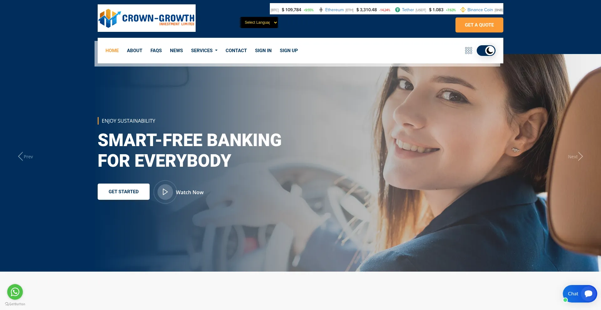 crowngrowthinvestsltd.com 使用 Bootstrap,这是一个广泛采用的开源响应式网页开发框架。Bootstrap 通过标准化组件和样式实现移动友好界面的高效创建。