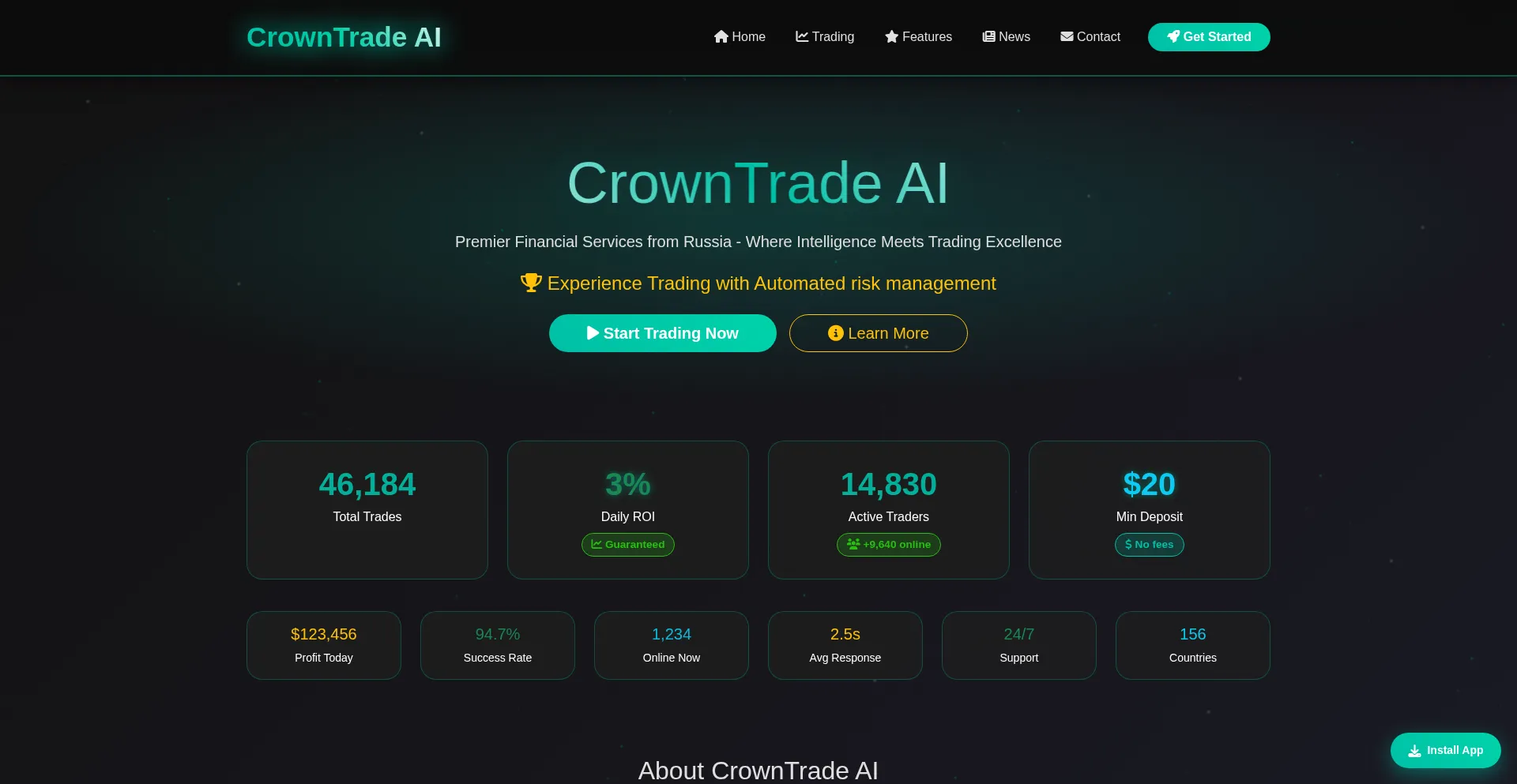 网站 crowntradai.com 被配置为一个带有移动应用功能的网络应用。用户可以直接将该网站安装到设备的桌面上,以快速访问并享受类似移动应用的体验。