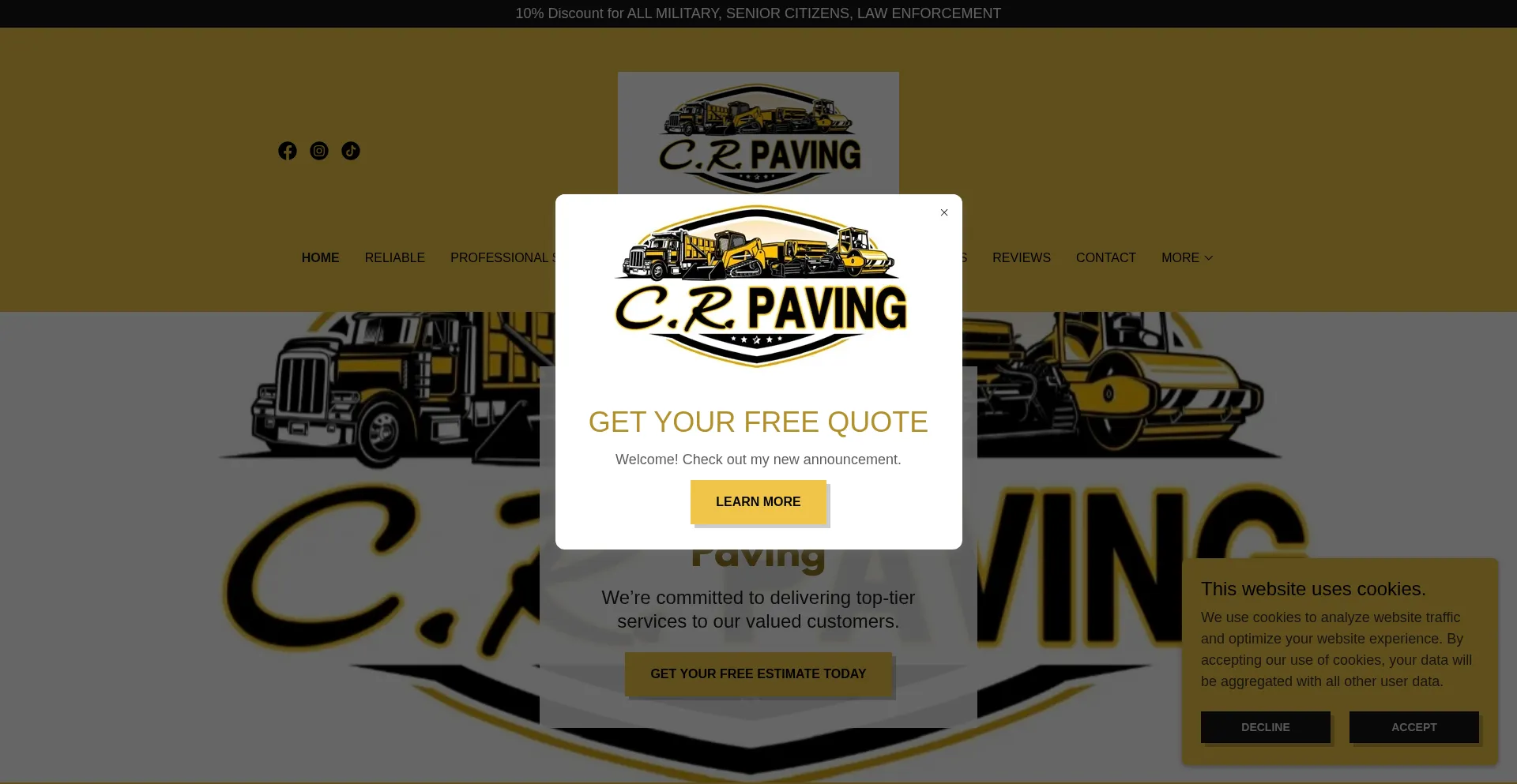 该网站实现符合GDPR或CCPA等隐私法规的cookie同意机制。这表明 crpavingpro.com 遵守数据保护标准并为用户提供对个人数据收集实践的控制。