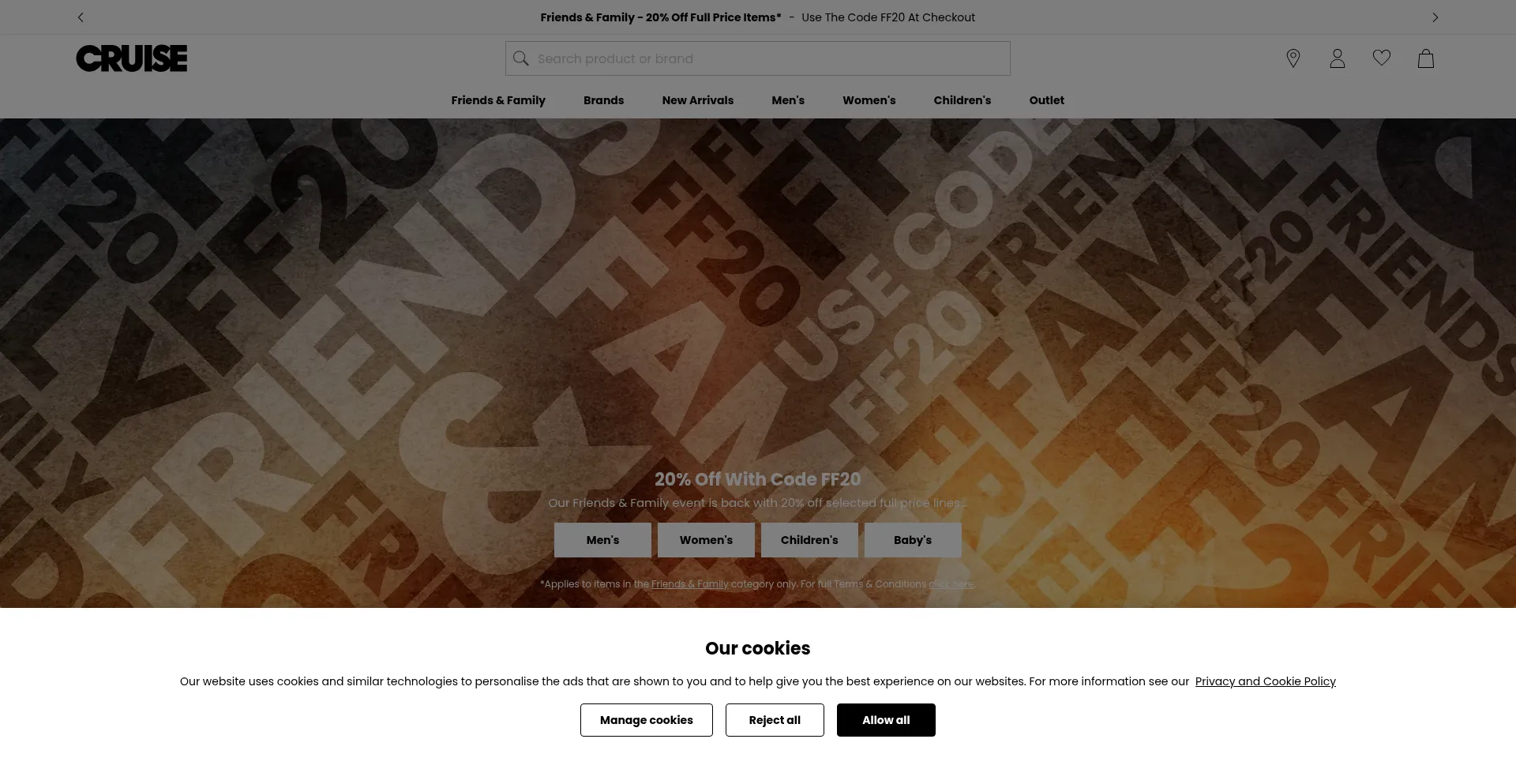 该网站实现符合GDPR或CCPA等隐私法规的cookie同意机制。这表明 cruisefashion.com 遵守数据保护标准并为用户提供对个人数据收集实践的控制。