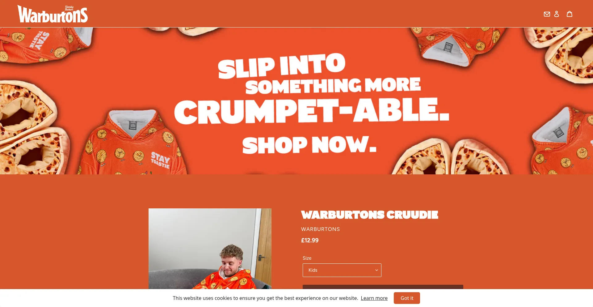 网站上存在社交媒体链接表明 crumpetslippers.warburtons.co.uk 在社交媒体上维护官方账户,这是可信度和参与度的积极信号。
