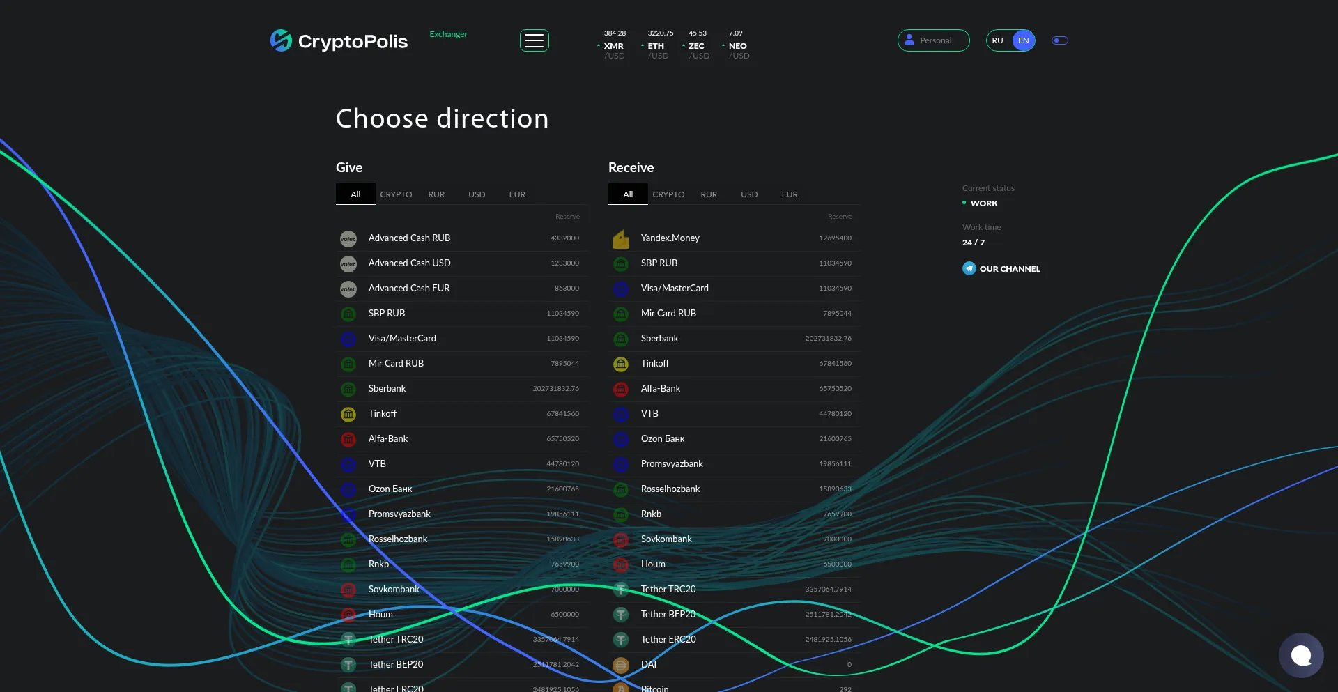 Инновационный обмен криптовалют и платежных систем. Обменяем Qiwi, Сбербанк, Яндекс.Деньги, Bitcoin, Eth...
