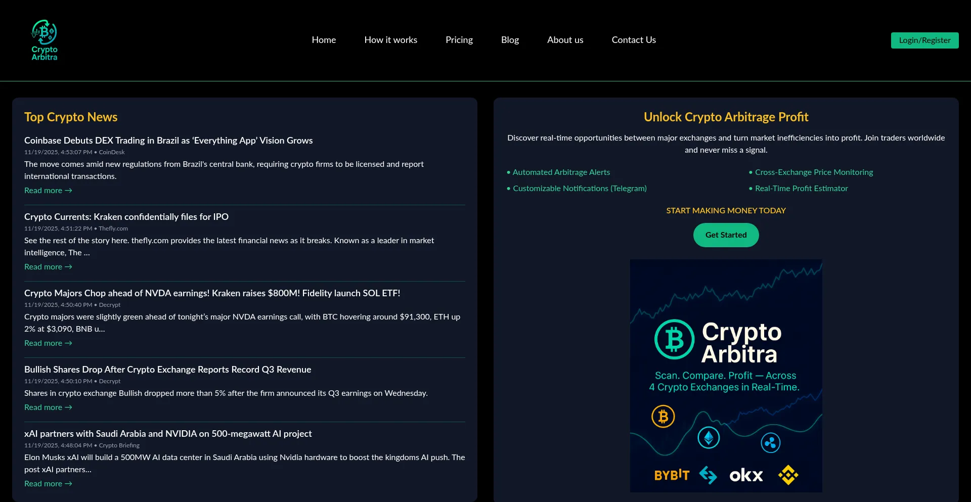 该网站实现数据收集表单,请求个人信息,包括姓名、电子邮件地址、电话号码或其他敏感详细信息。用户应验证 cryptoarbitra.com 的合法性并在提交个人数据前查看隐私政策。