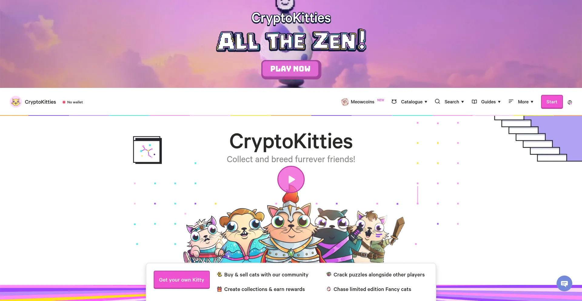 Collect and trade CryptoKitties in one of the world’s first blockchain games. Breed your rarest cats to create the purrfect furry friend. The future is meow!
