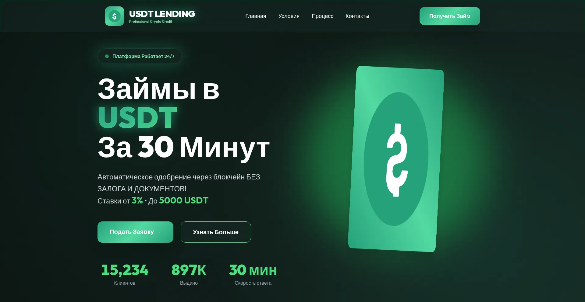 Получите займ в USDT за 30 минут. Процентные ставки от 3%, суммы до 5000 USDT. Залог BTC/ETH/BNB. Смарт-контракты...