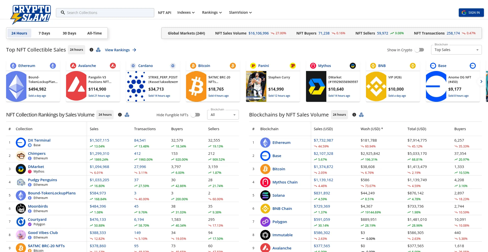 CryptoSlam! NFT data, rankings, prices, sales volume charts, market cap