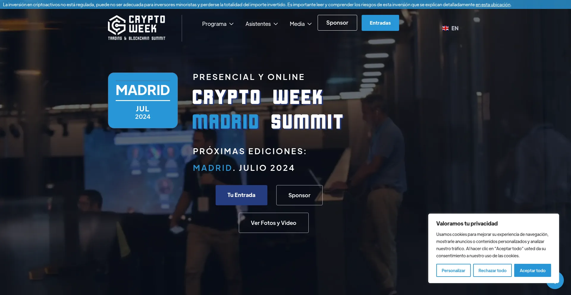 Asiste a la mayor conferencia de Cripto, Trading, Inversión, Blockchain y NFTs en Madrid. 12.000 Asistentes, 100 Speakers, 40 Sponsors.