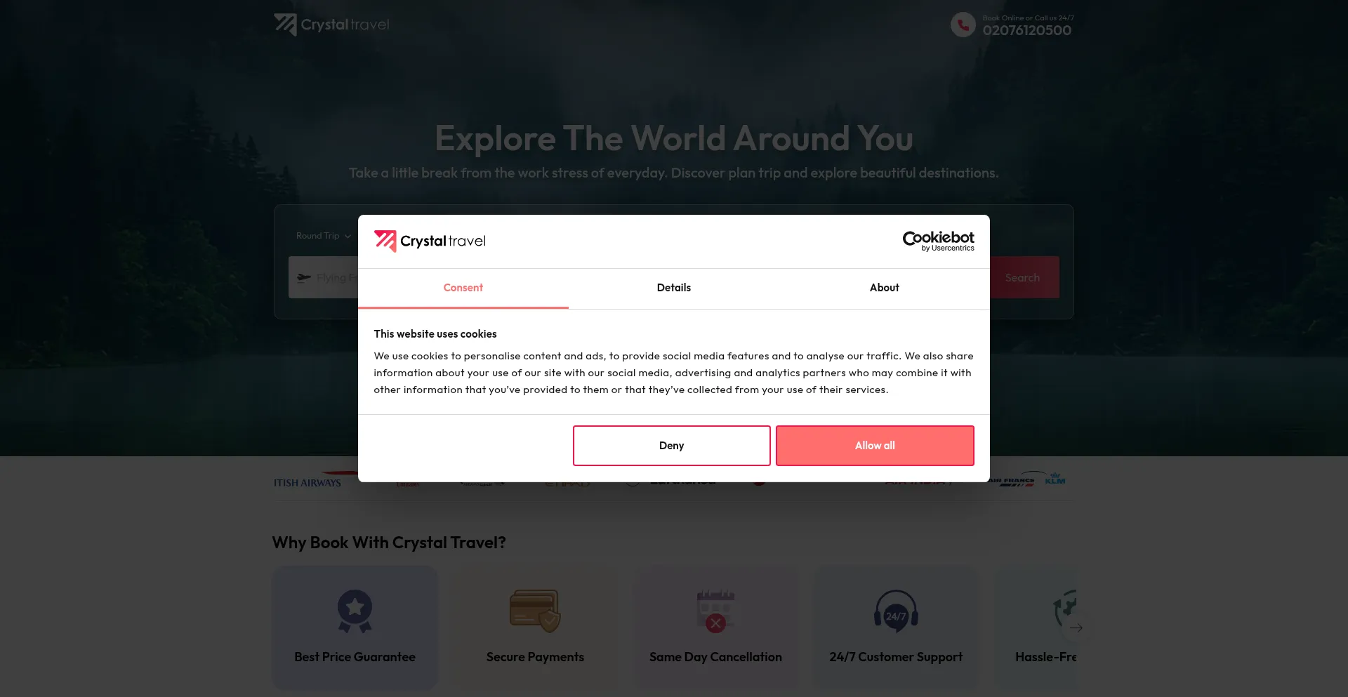 该网站实现符合GDPR或CCPA等隐私法规的cookie同意机制。这表明 crystaltravel.co.uk 遵守数据保护标准并为用户提供对个人数据收集实践的控制。