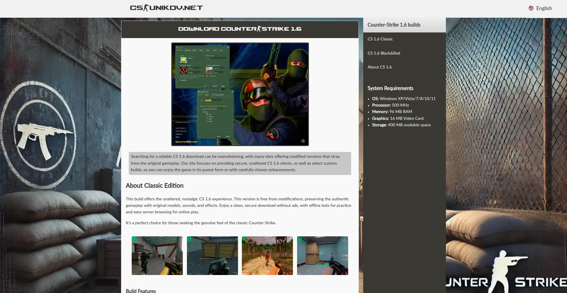 Discover the timeless classic, Counter-Strike 1.6. Tactical gameplay, iconic maps, and a thriving community make CS 1.6 a must-play. Download for free now!