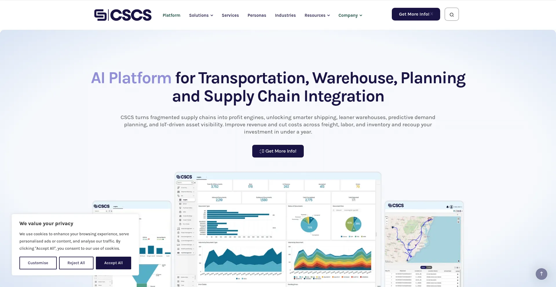 CSCS offers an AI-powered solution for supply chain management. We integrate transportation, warehousing, and planning to make your supply chain a profit center