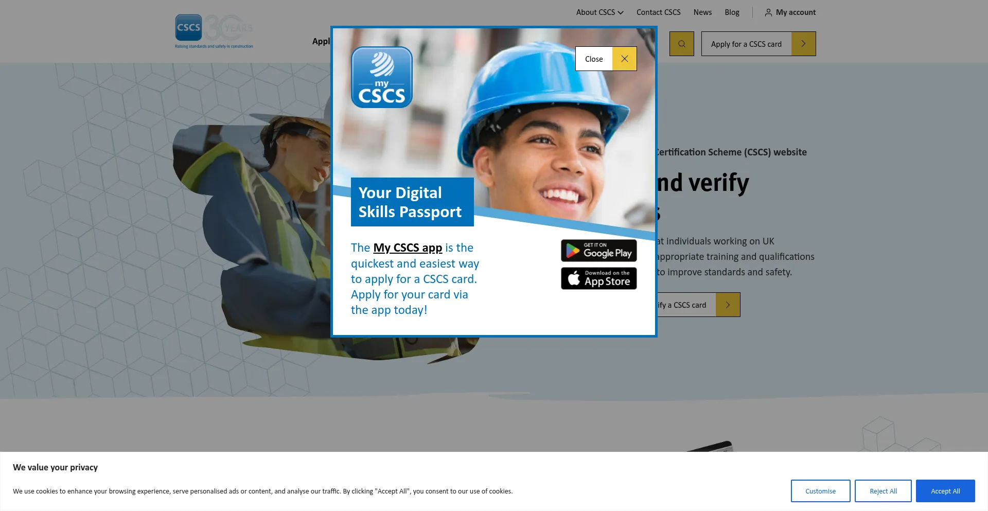 cscs.uk.com 拥有可用的 iOS 移动应用程序,表明为 Apple 设备用户提供跨平台可访问性。