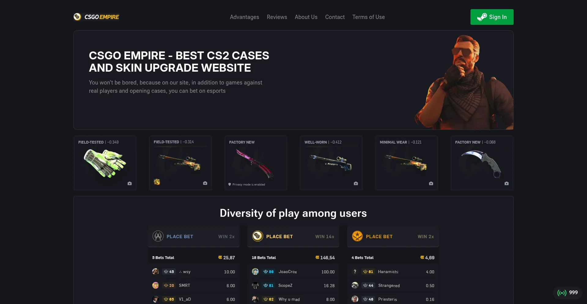 CSGO EMPIRE — Open CS2, CS:GO cases with instant withdrawal of items!