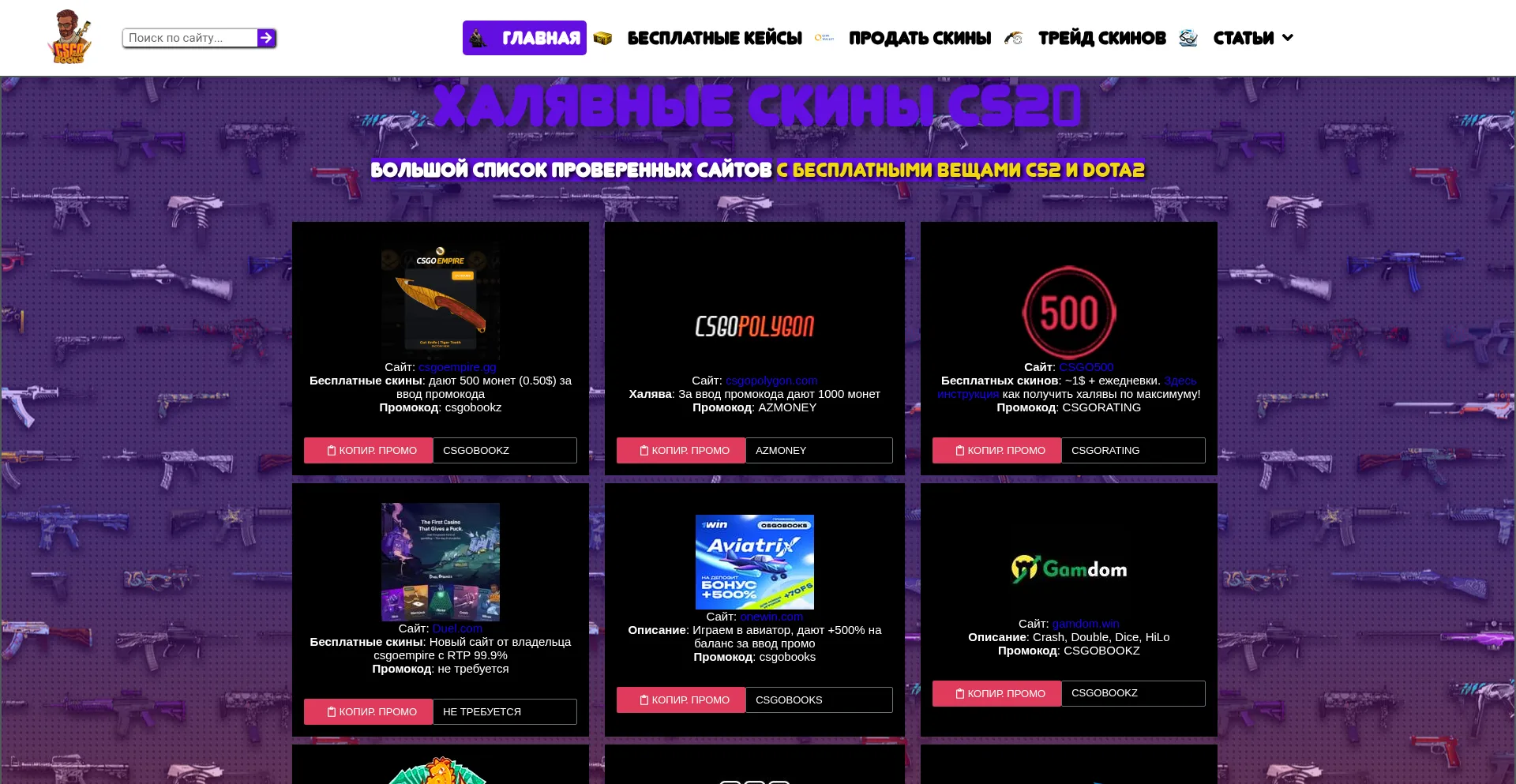 Список лучших сайтов которые раздают бесплатные и халявные скины кс2 и ксго, без депозита, с рабо�...