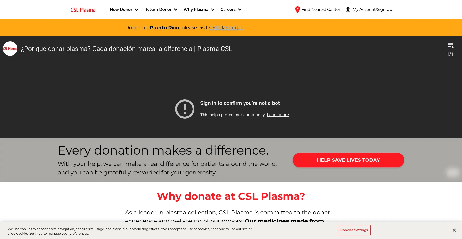 该网站实现符合GDPR或CCPA等隐私法规的cookie同意机制。这表明 cslplasma.com 遵守数据保护标准并为用户提供对个人数据收集实践的控制。