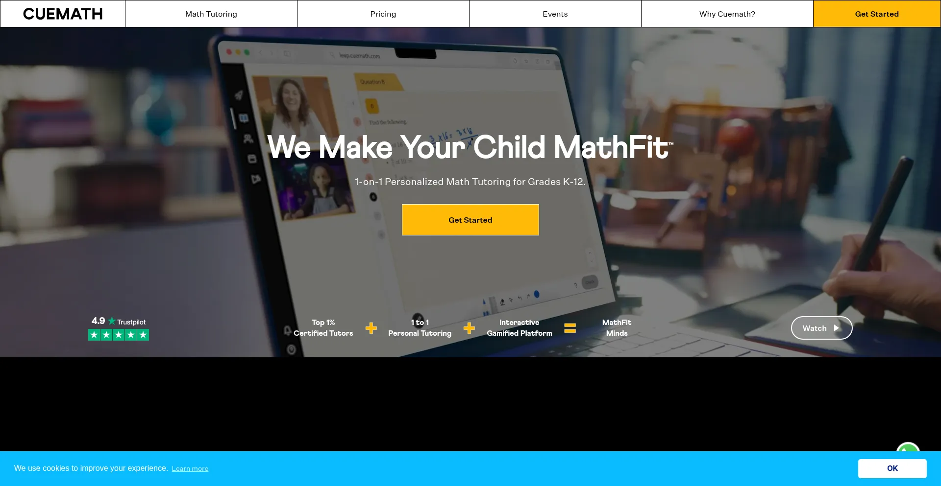 该网站实现符合GDPR或CCPA等隐私法规的cookie同意机制。这表明 cuemath.com 遵守数据保护标准并为用户提供对个人数据收集实践的控制。