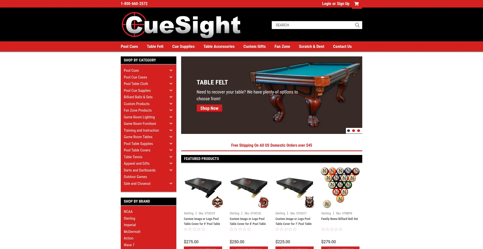 CueSight offers pool cues, pool table felt, billiard supplies and unique custom accessories at discount prices.