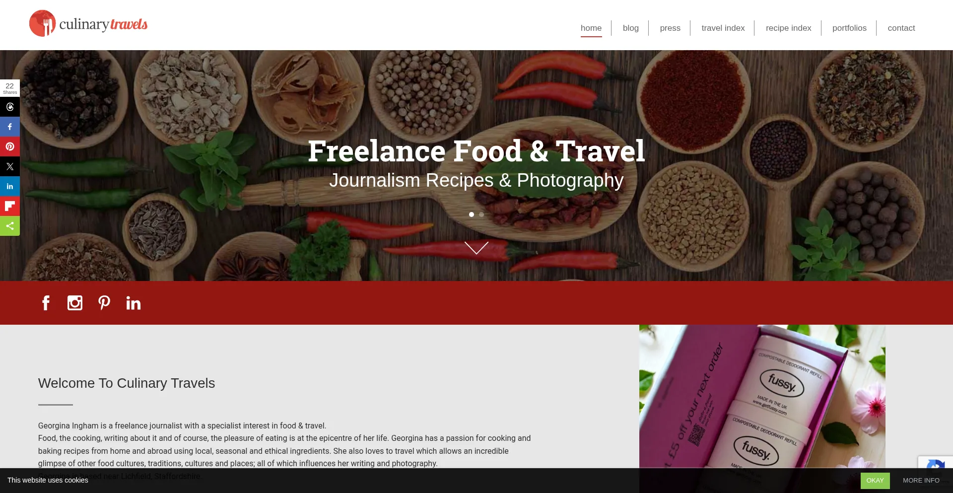 网站上存在社交媒体链接表明 culinarytravels.co.uk 在社交媒体上维护官方账户,这是可信度和参与度的积极信号。