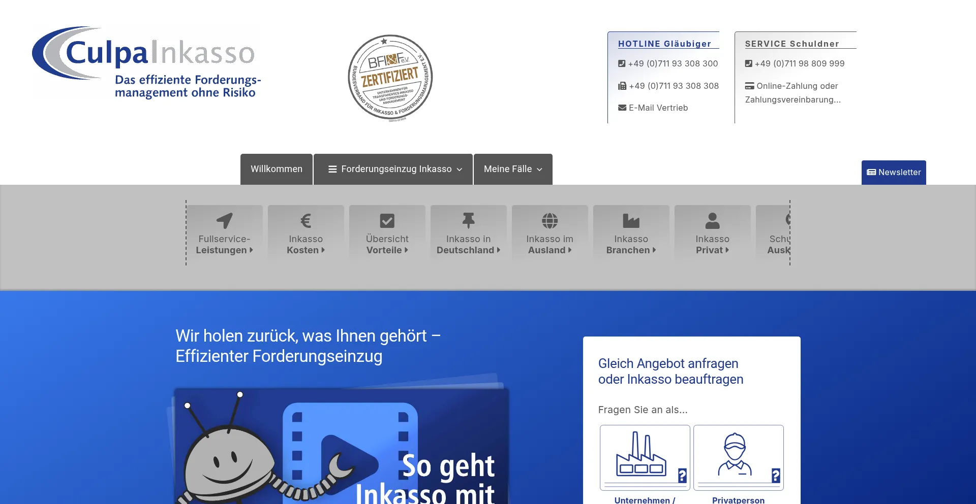 Führendes Inkassounternehmen Culpa Inkasso GmbH für Einzug offener Forderungen im In- & Ausland sowie in Einzel- und Masseninkasso-Verfahren.