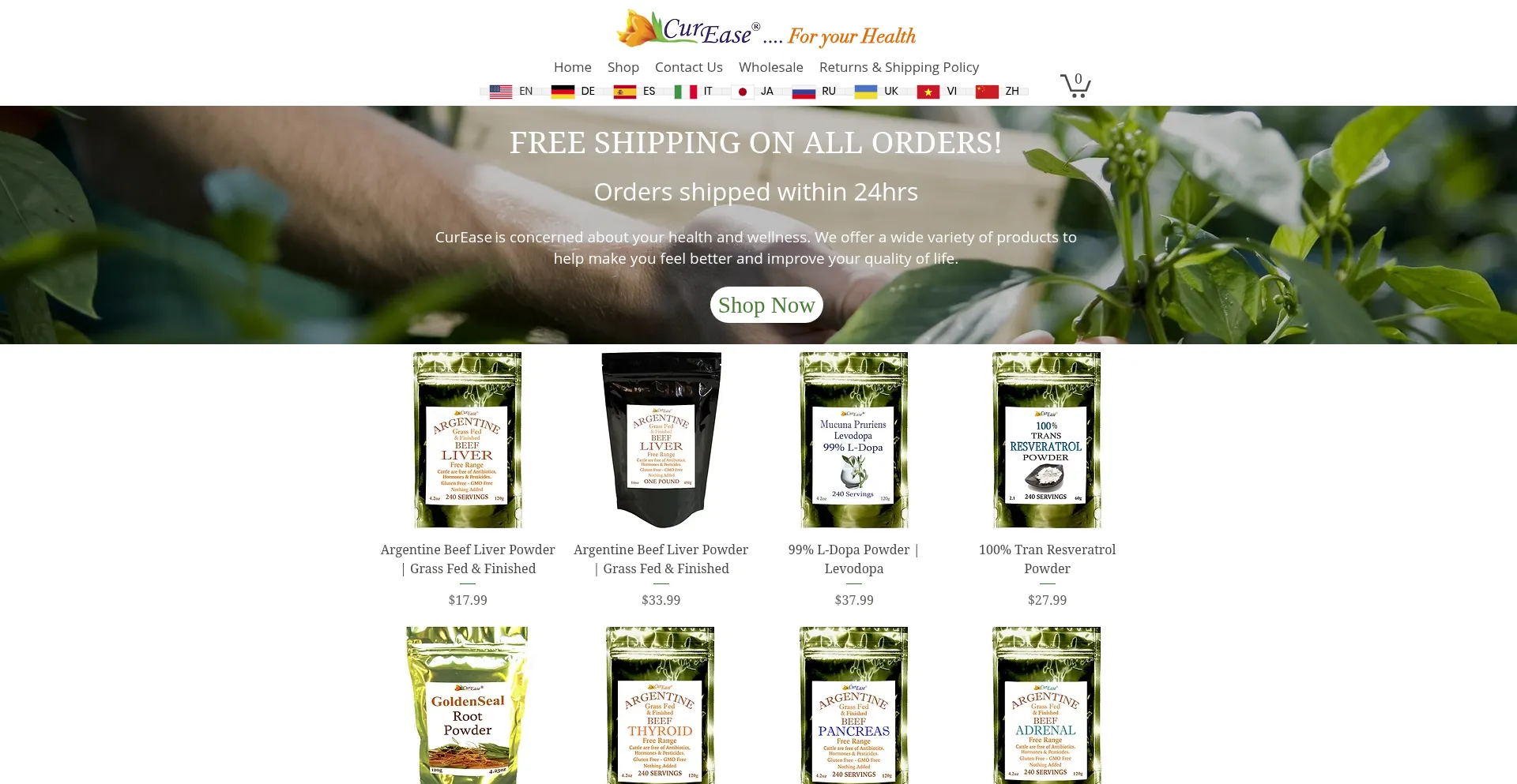 CurEase Pure Powders | Goldenseal Root | 100% Trans Resveratrol | Tribulus Terrestris 95% Saponins | L-Dopa | Argentine Beef Organ Powders - Liver, Thyroid, Thymus, Adrenal, Kid...