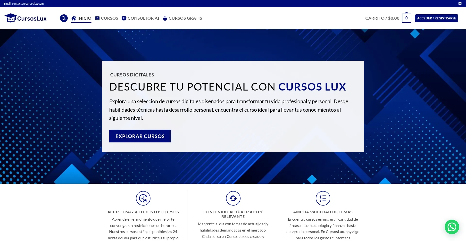 分析表明 cursoslux.com 作为电子商务平台运营,促进商品或服务的在线交易。该网站实现了购物车功能、支付处理系统和产品目录功能,这些是商业零售运营的典型特征。