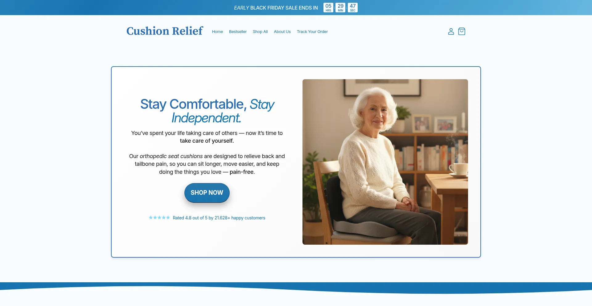 分析表明 cushionrelief.com 作为电子商务平台运营,促进商品或服务的在线交易。该网站实现了购物车功能、支付处理系统和产品目录功能,这些是商业零售运营的典型特征。