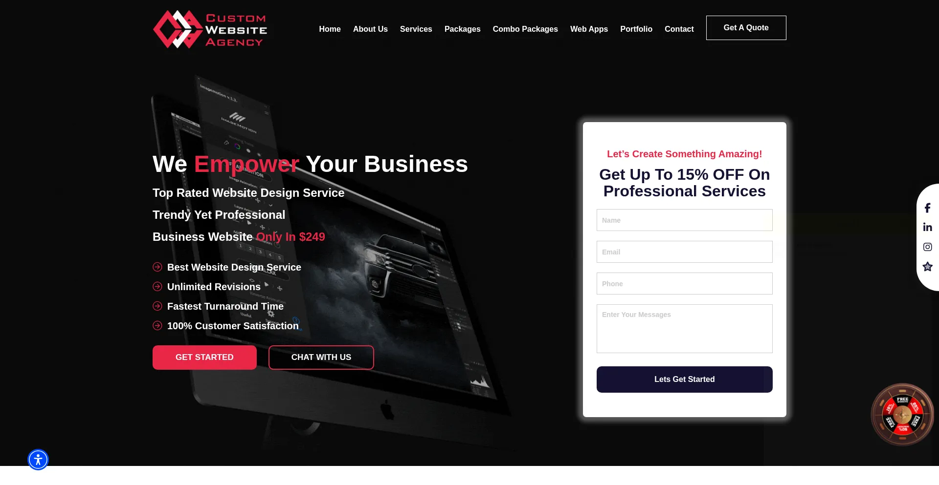 网站上存在社交媒体链接表明 customwebsiteagency.com 在社交媒体上维护官方账户,这是可信度和参与度的积极信号。