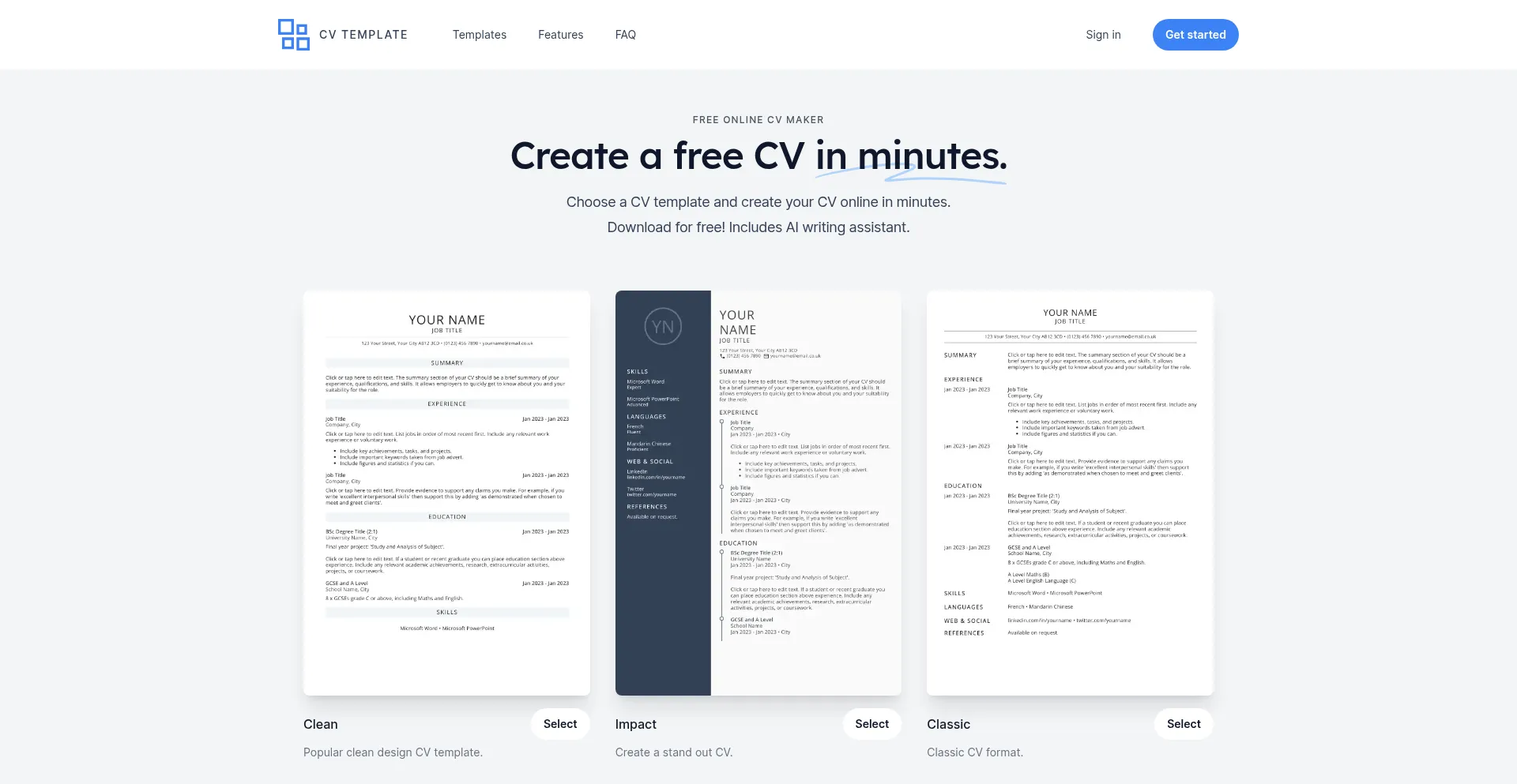 Free online CV maker. Choose a CV template and create your CV online in minutes. Download for free! Includes AI writing assistant that can help write your CV.