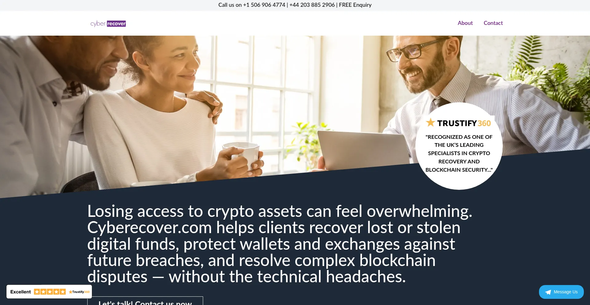 网站 cyberecover.net 宣传针对丢失或被盗资产的资金恢复服务。虽然一些在应急费用结构上运营,其他可能需要预付款,这可能表明欺诈运营。在聘请此类服务前验证凭据和监管合规性。