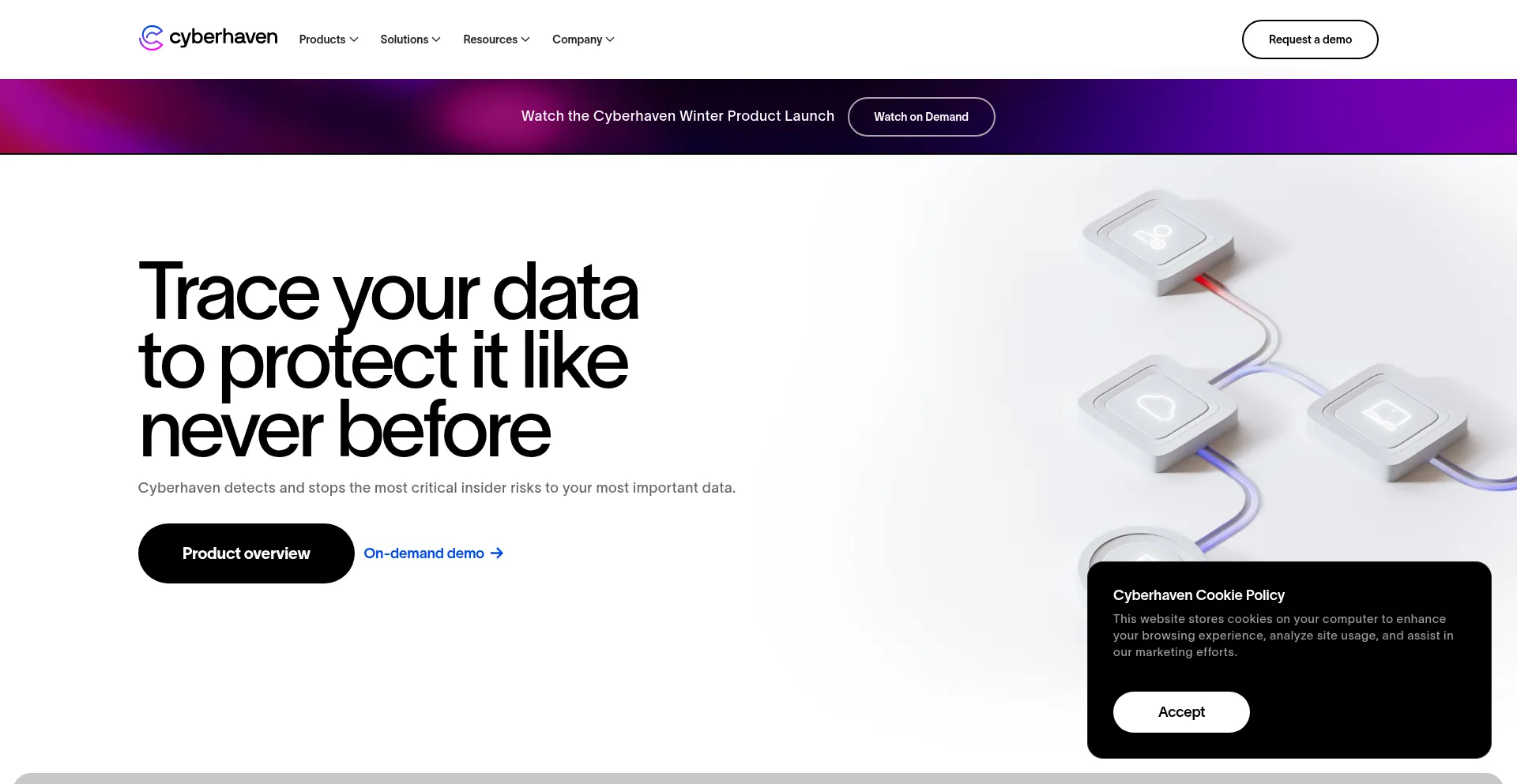 cyberhaven.com 使用 Google Tag Manager 在其网站上添加和更新追踪代码(标签)。