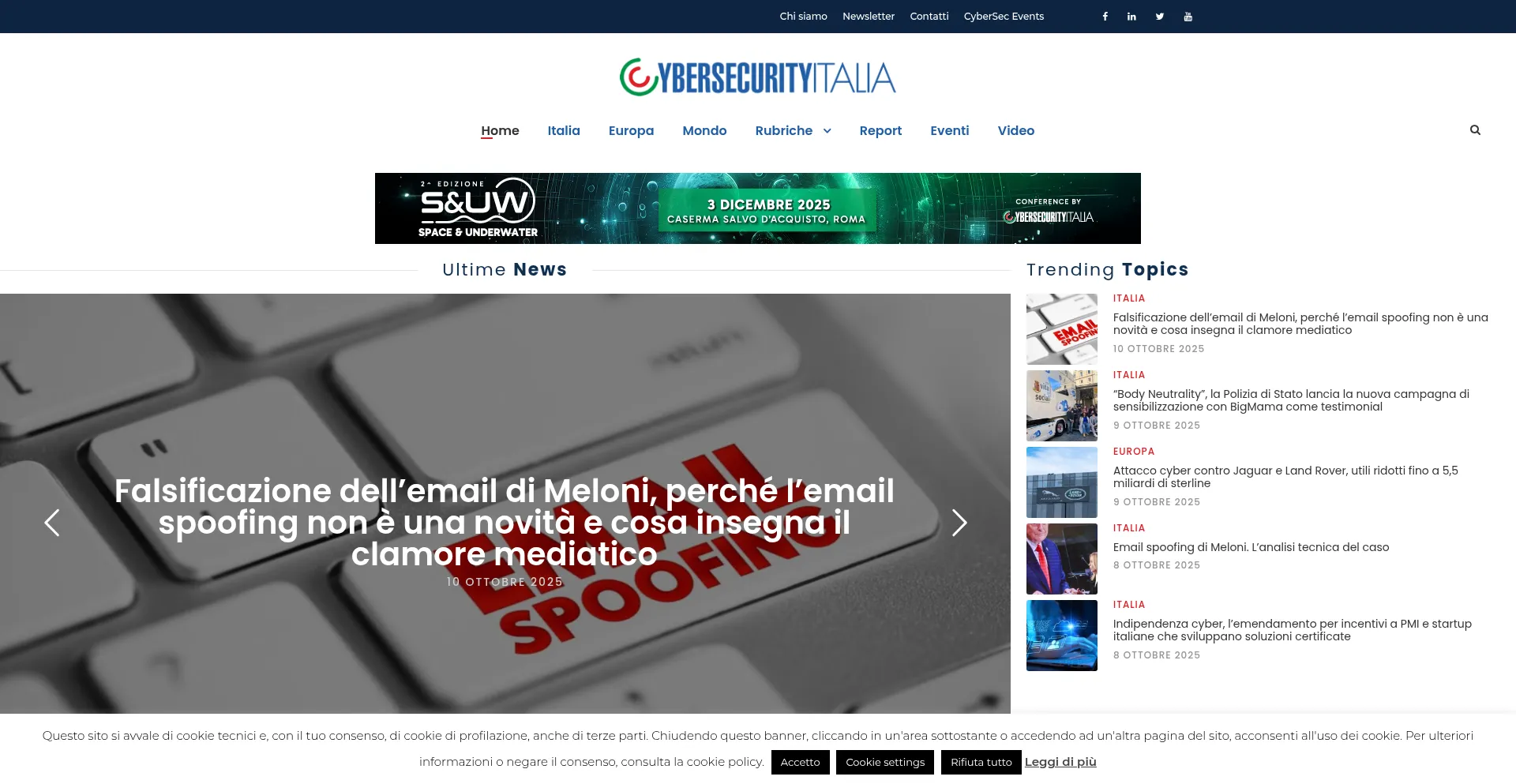 L'homepage di CyberSecurity Italia, il quotidiano online sulla cybersicurezza, con le notizie più importanti sulla sicurezza informatica.