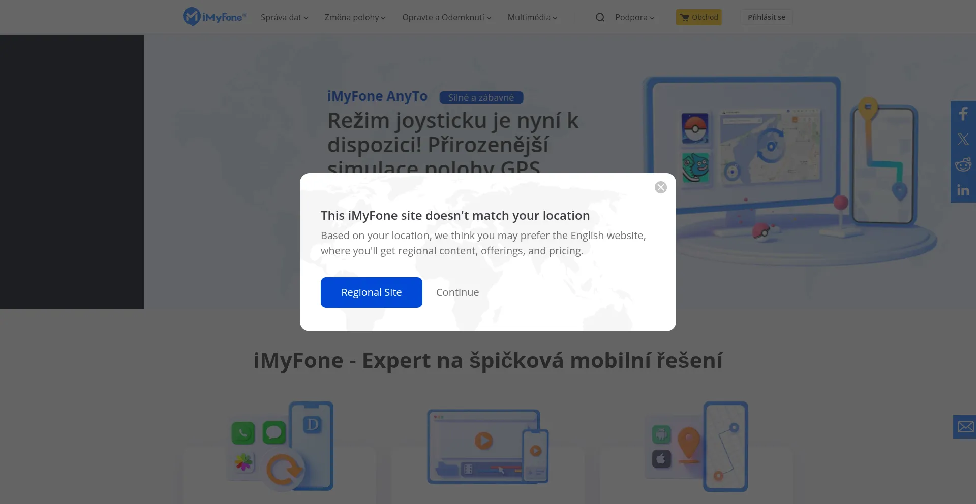 Oficiální stránky iMyFone - softwarová řešení pro iOS, Android a PC