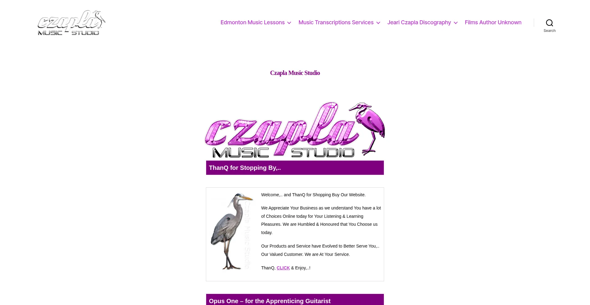 Czapla Music Studio Best Professional Music Transcriptions Service Edmonton Guitar Music Lessons Singing Bass Drums Canadian Online Music School Jazz Records.