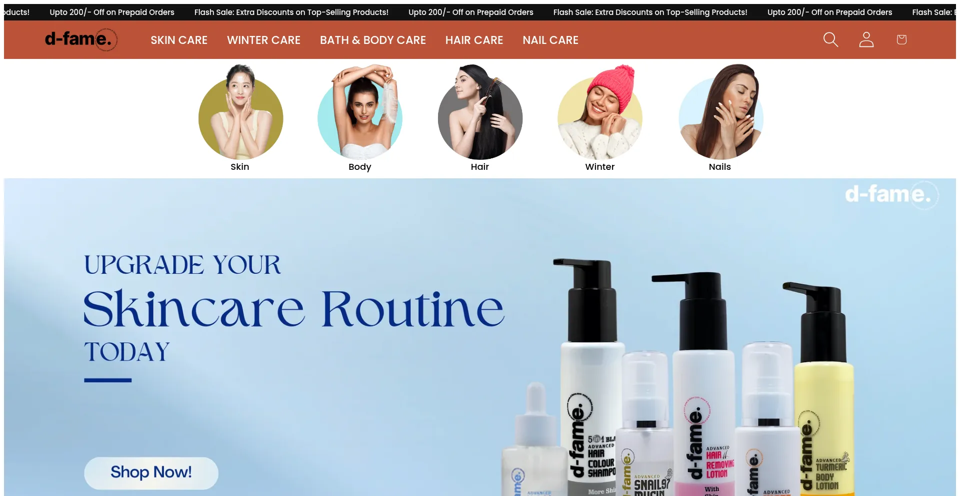 Explore D-Fame's range of premium skincare, haircare, and nailcare products. From turmeric body lotions and hair color shampoos to nail repair serums, our cruelty-free, dermatol...