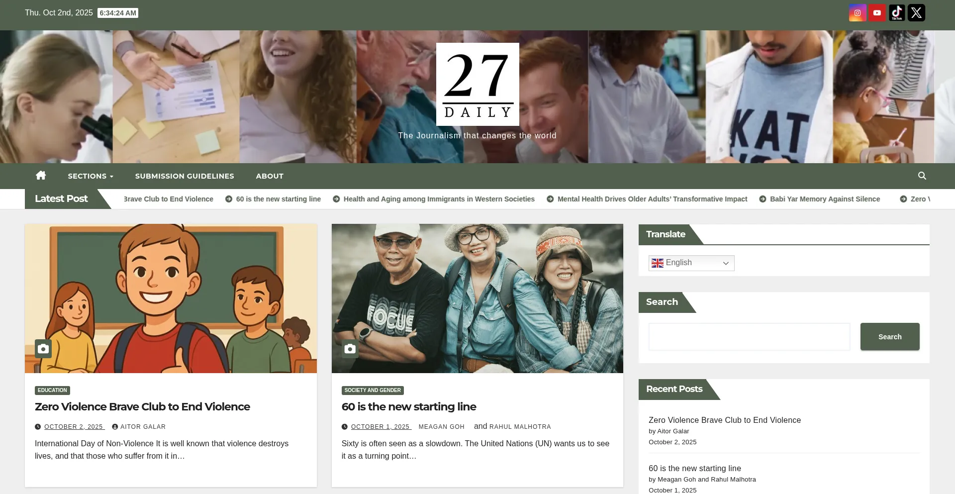 网站上存在社交媒体链接表明 daily27.info 在社交媒体上维护官方账户,这是可信度和参与度的积极信号。