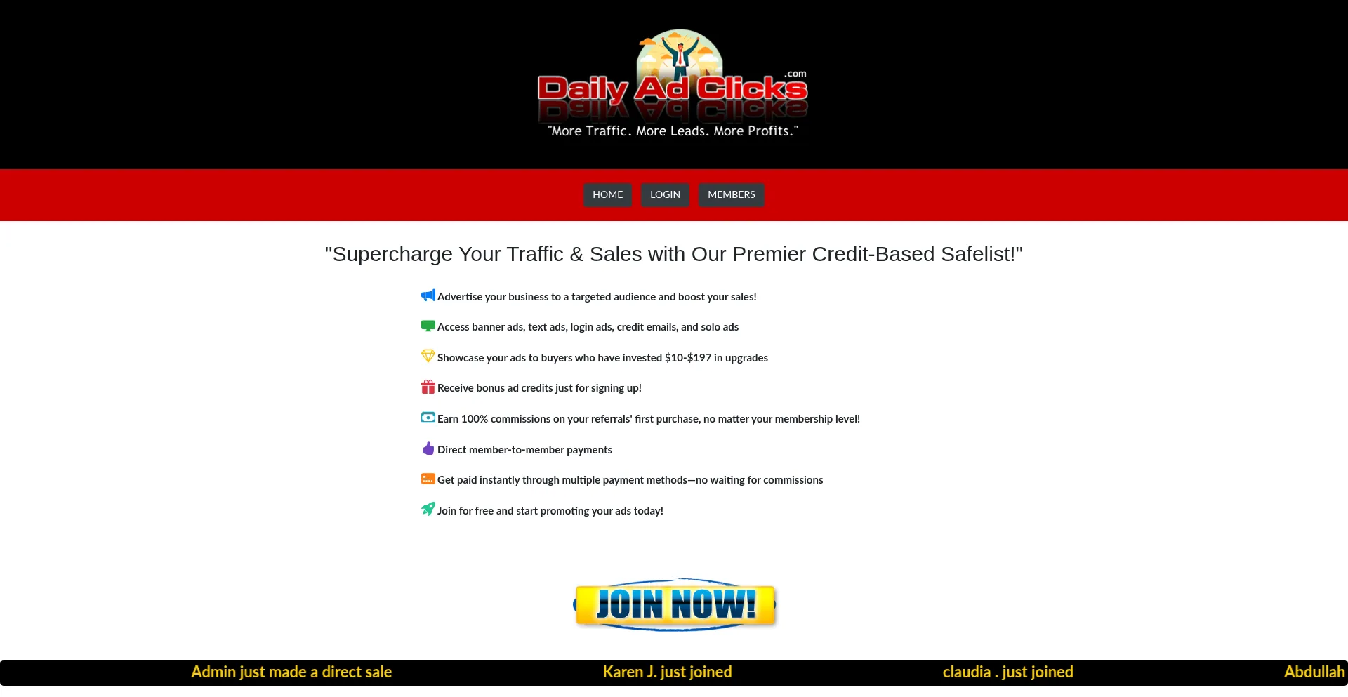 Daily Ad Clicks! Free Viral Credit-Based Safelist Advertising | Free Advertising & Web Traffic