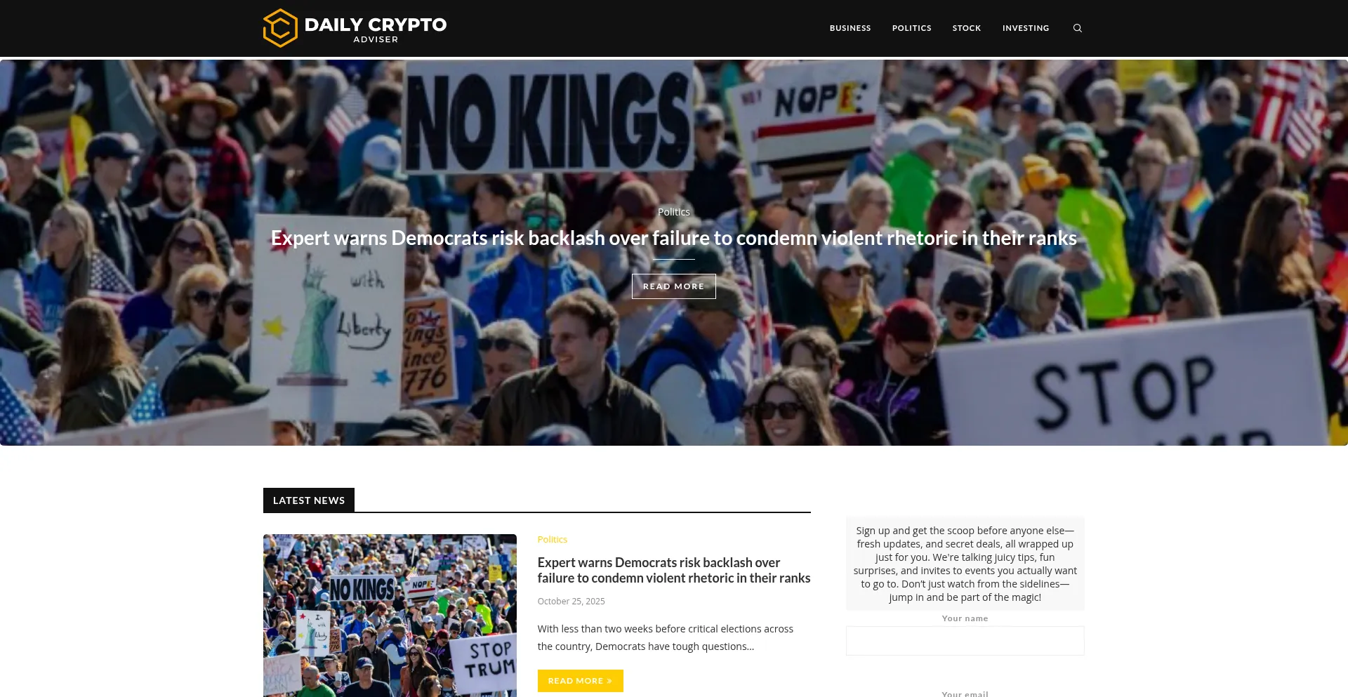 网站上存在社交媒体链接表明 dailycryptoadviser.com 在社交媒体上维护官方账户,这是可信度和参与度的积极信号。