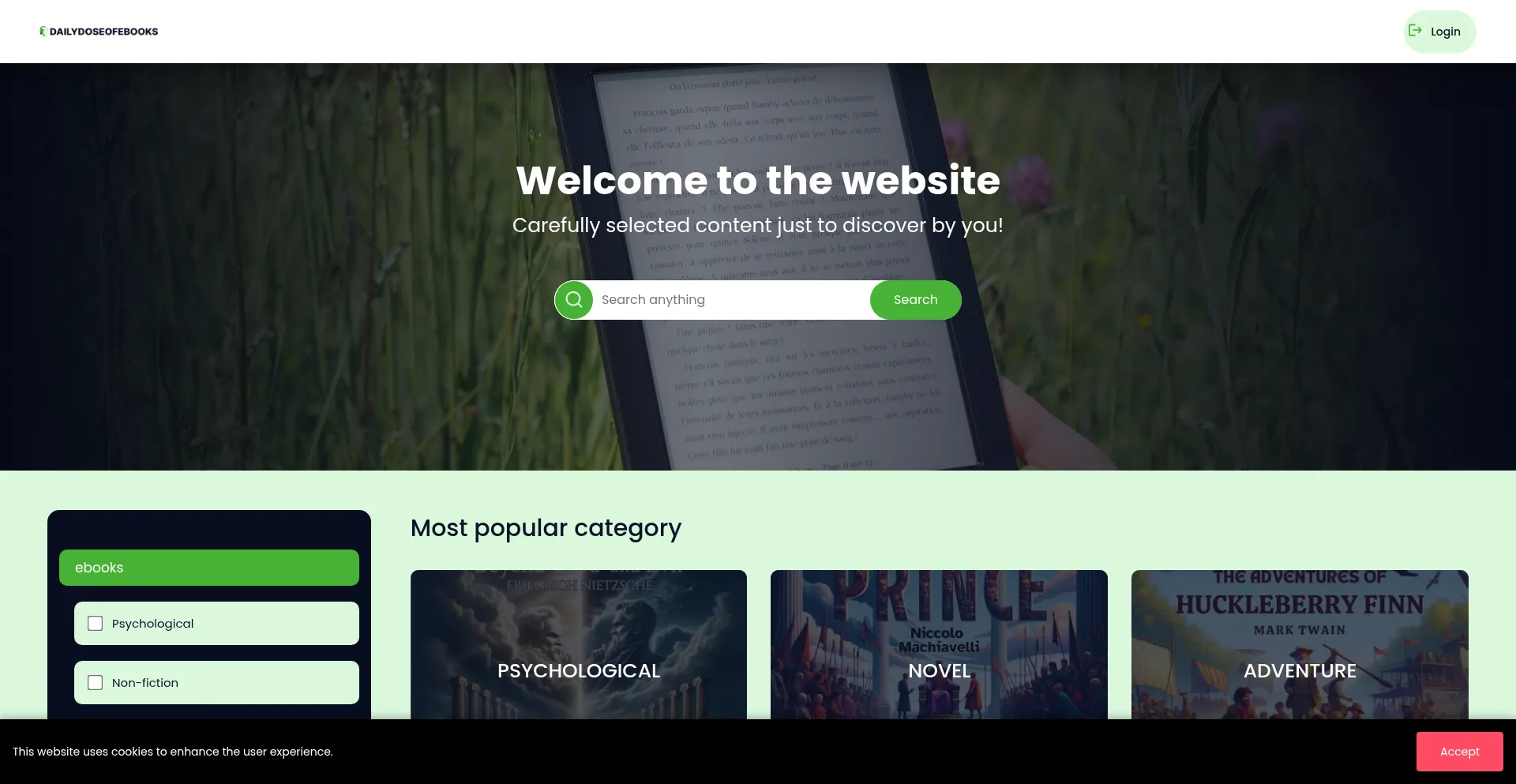 网站 dailydoseofe-books.com 使用 React 构建,这是一个用于创建交互式用户界面的流行 JavaScript 库。