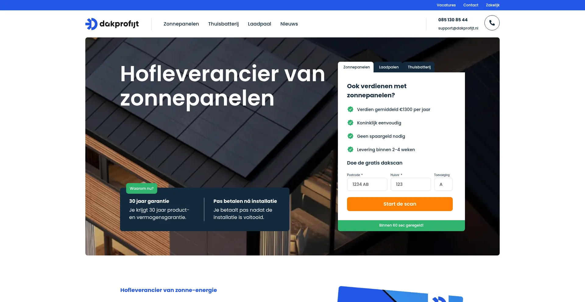 Bespaar direct met onze topkwaliteit zonnepanelen, thuisbatterijen en laadpalen. Ontdek Dakprofijt, dé hofleverancier van zonne-energieoplossingen.