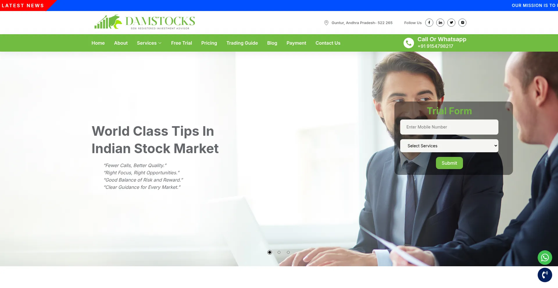 网站上存在社交媒体链接表明 damstocks.com 在社交媒体上维护官方账户,这是可信度和参与度的积极信号。