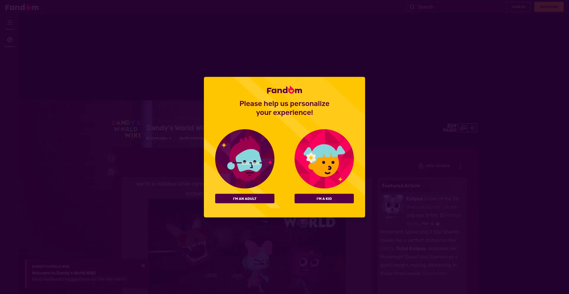 dandysworld.fandom.com 提供 Android 设备移动应用程序,表明平台存在已扩展到网络服务之外。