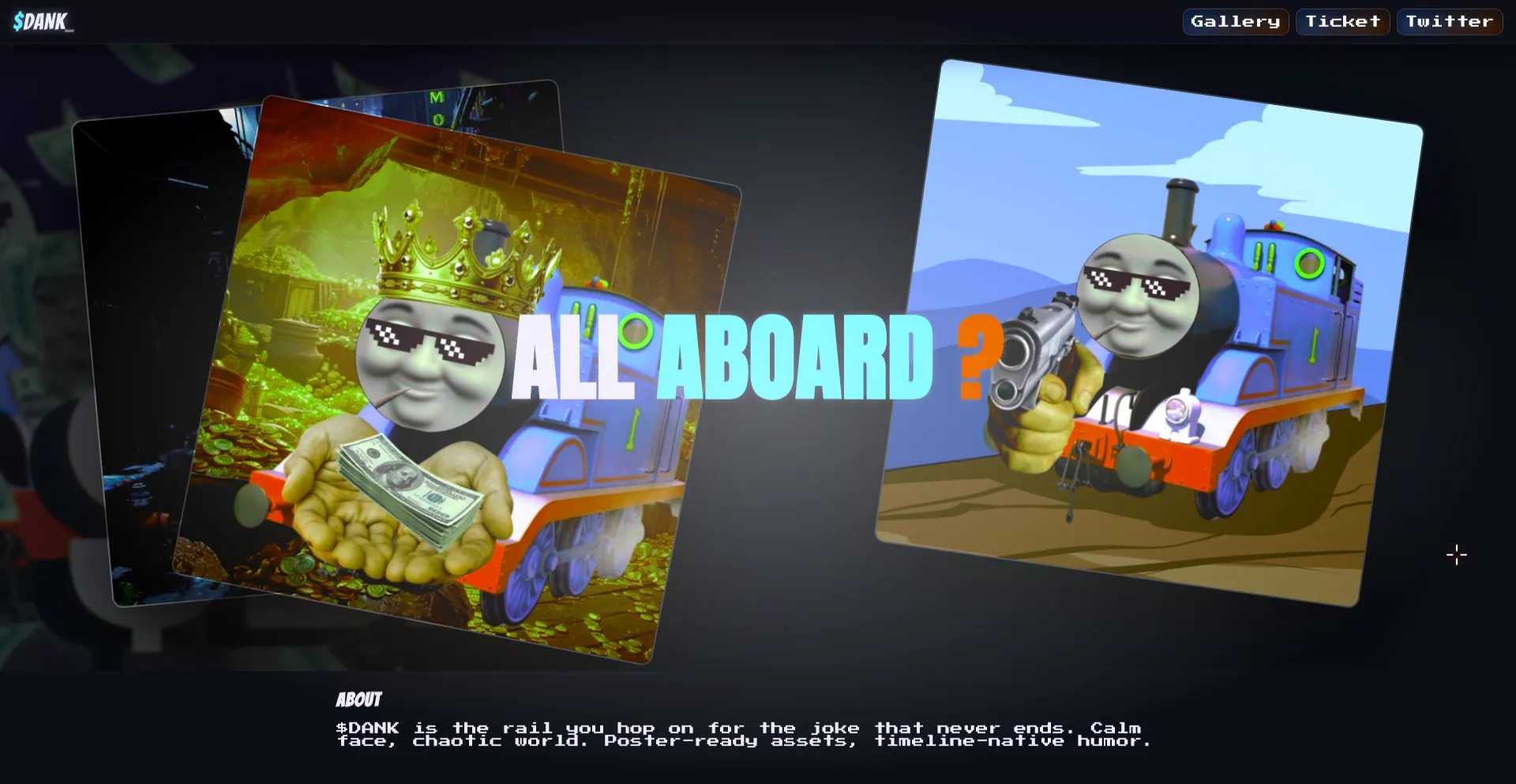 $DANK — maximalist rail energy: posters, sirens, money rain.