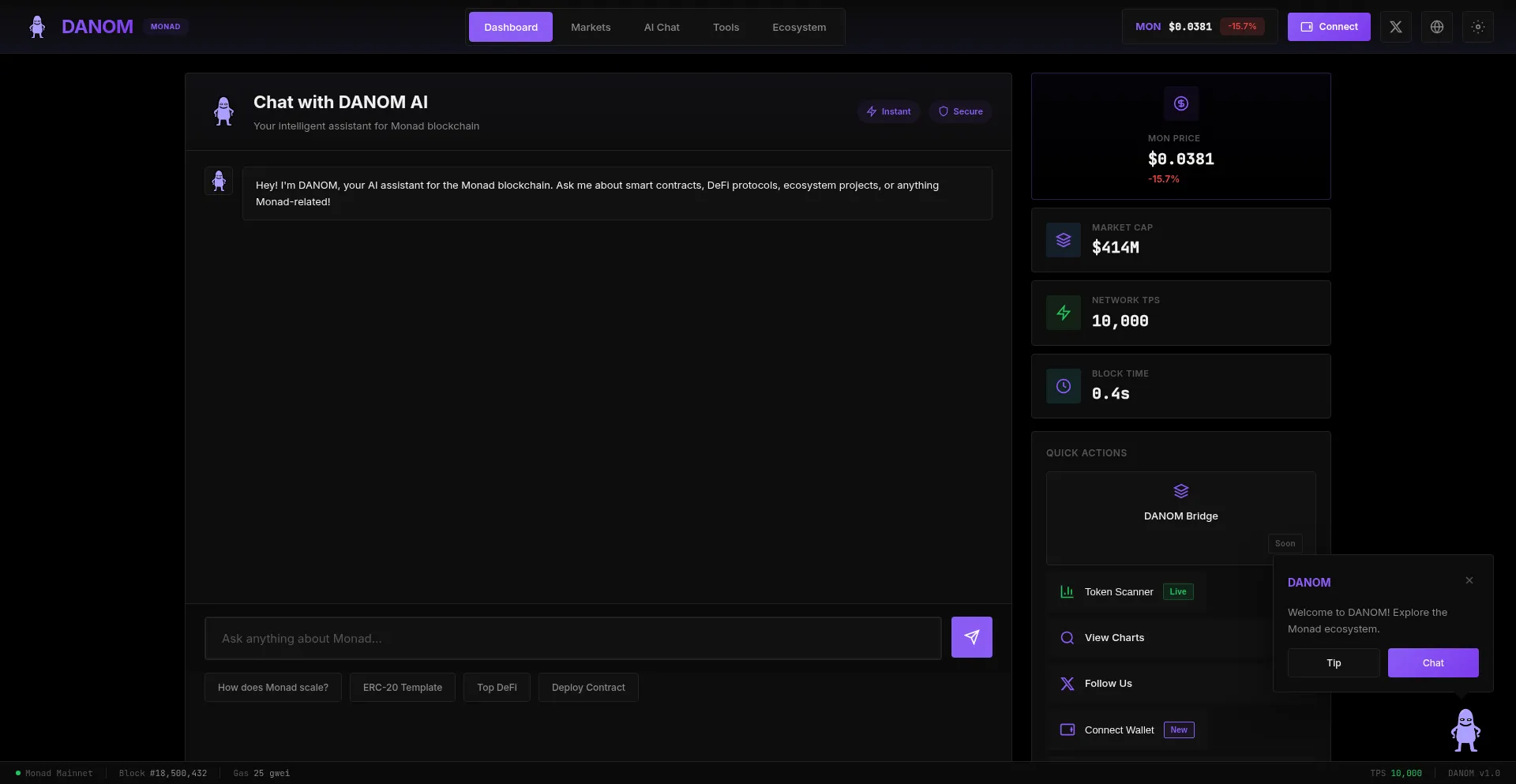DANOM - AI-Powered Monad Ecosystem Hub with live stats, tools, and developer resources.