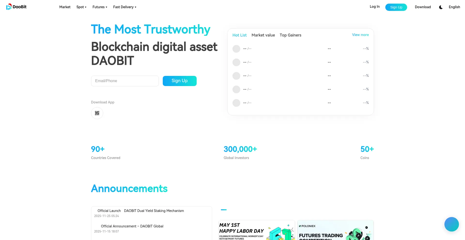 Trade BTC, NFTs, and Altcoins | Begin a New Era of Hassle-Free Trading | Daobit Buy and sell BTC, altcoins, and NFTs on Daobit. Invest in spot and futures markets, or stake you...