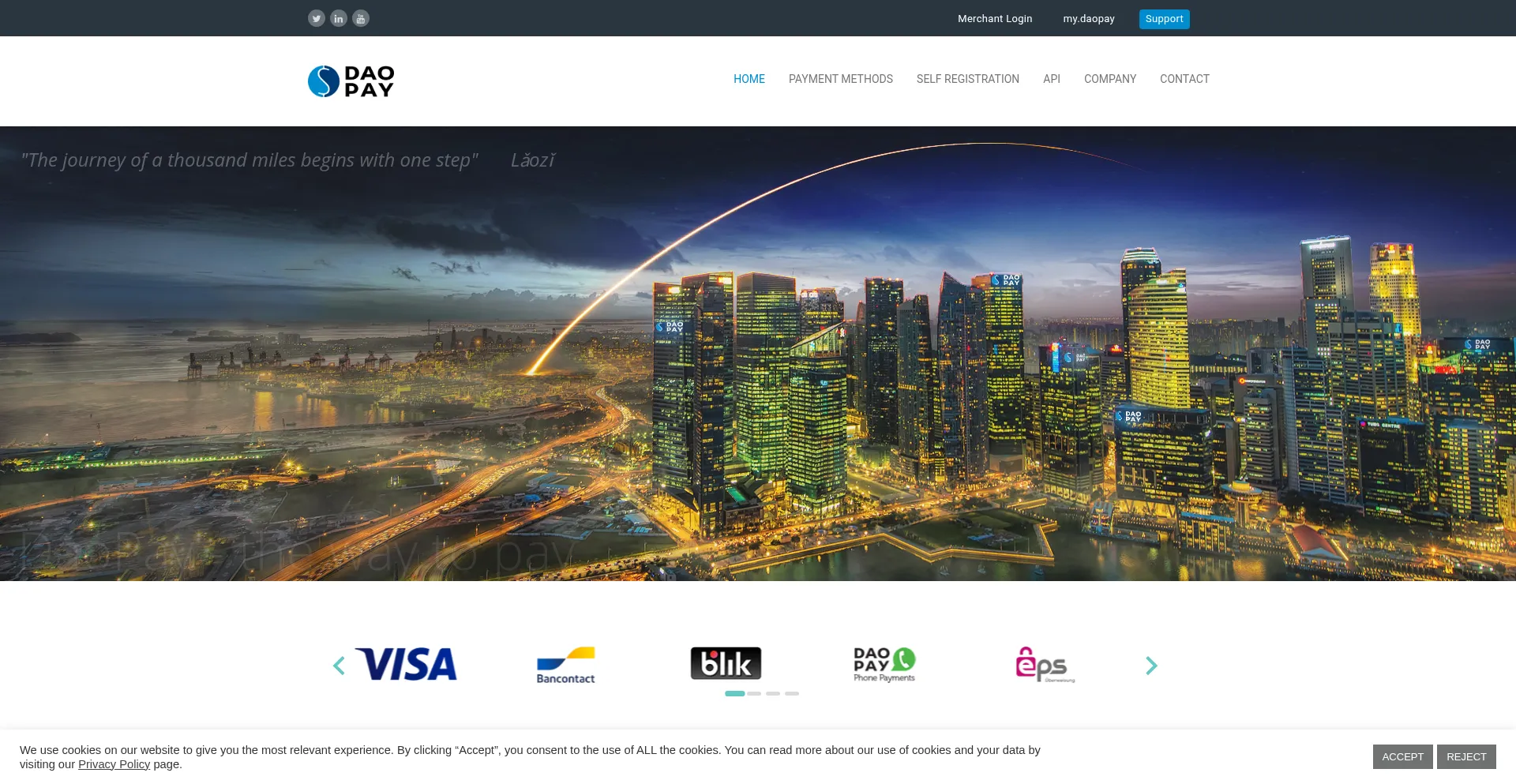 该网站实现符合GDPR或CCPA等隐私法规的cookie同意机制。这表明 daopay.com 遵守数据保护标准并为用户提供对个人数据收集实践的控制。